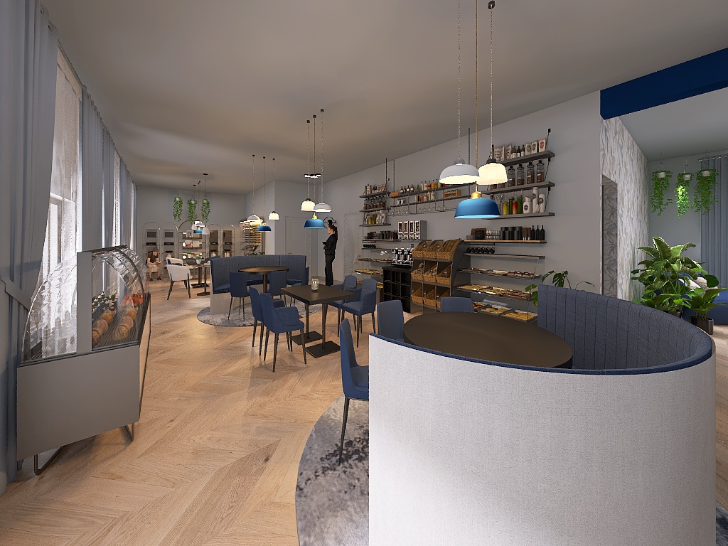 • Colore ottanio per tutte le pareti e le porte, così da creare uniformità e profondità